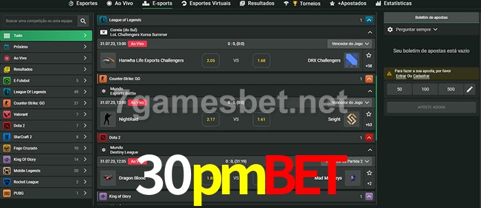 O 30pmbet oferece uma grande seleção de opções de apostas em e-sports com probabilidades competitivas